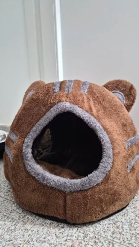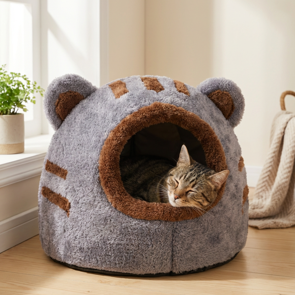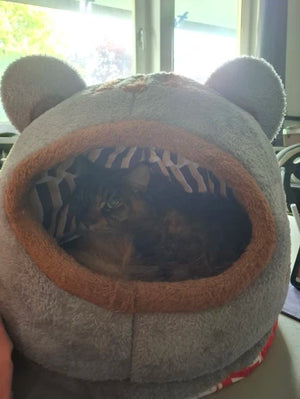 Enclosed bear-head design creates a safe, den-like space that calms nervous cats. Expect faster settling and more naps, making mornings quieter for you and your pet 🐾🏡